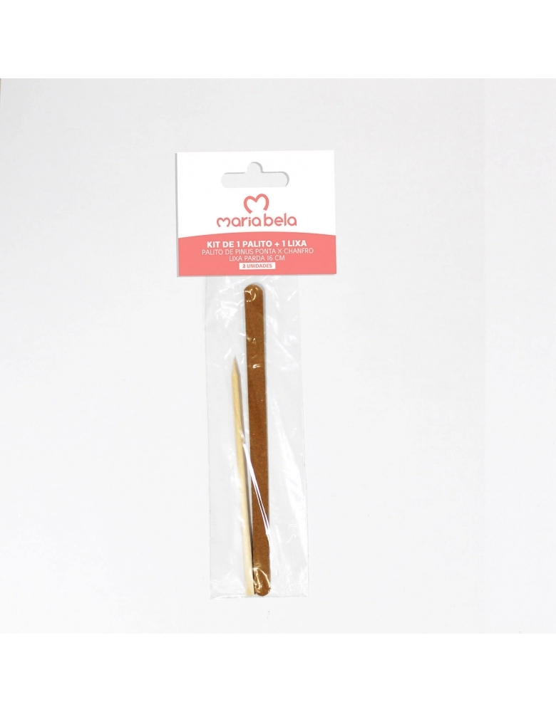 Nails>ALONGAMENTO>KIT C/ 01 LIXAS PARDAS 16 CM E 01 PALITOS DE PINUS PONTA X CHANFRO